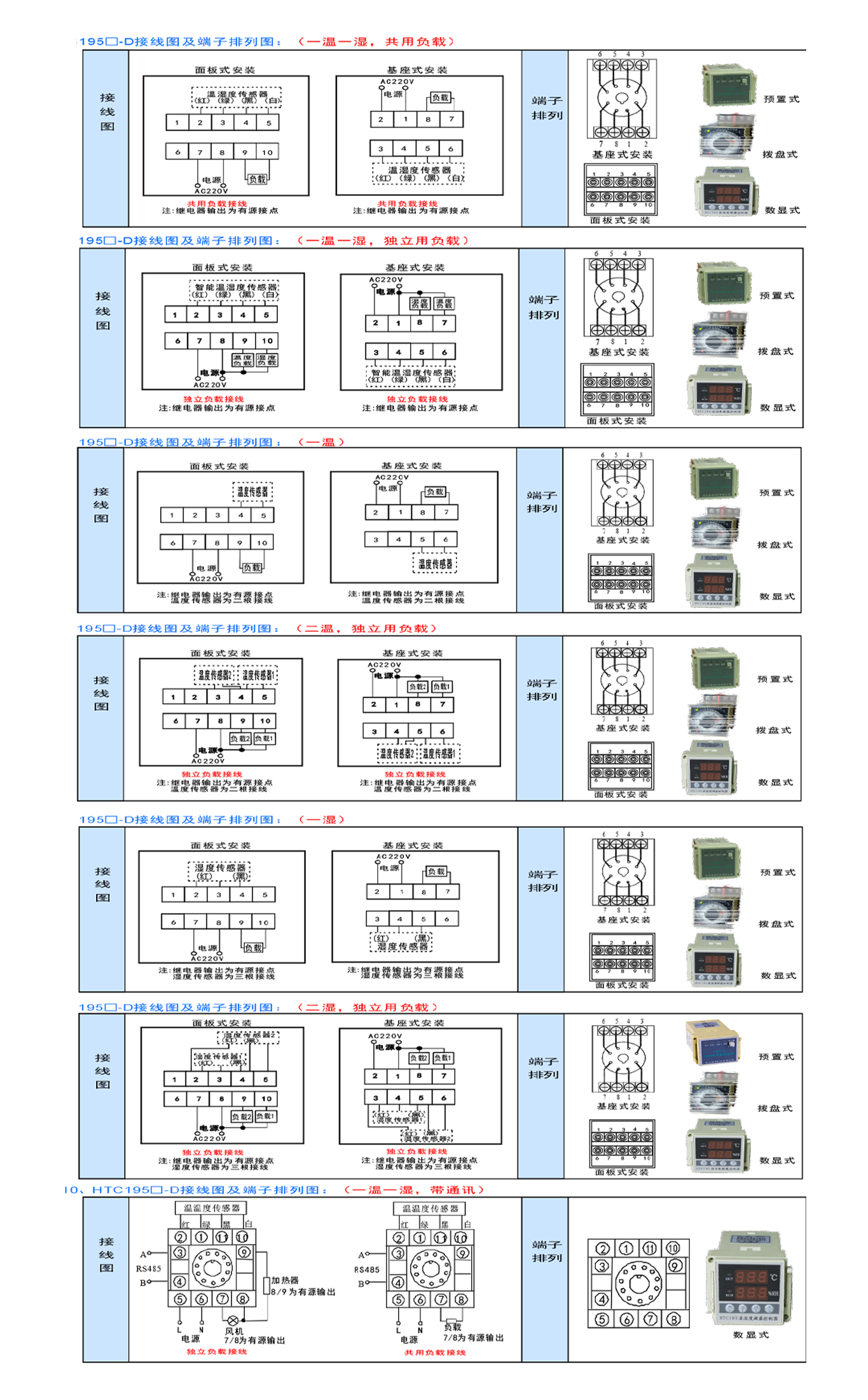 MT195系列拔盤式與數(shù)字式溫濕度/凝露控制器選用高可靠性微處理器與高性能的數(shù)字式溫濕度傳感器,以智能化軟件控制技術(shù)組合而成。控制器具有抗干擾能力強(qiáng)、控制精度高、控制方式靈活,能根據(jù)不同的溫濕度控制需要,可對(duì)溫濕度上下限、控制回差、控制方式分別進(jìn)行設(shè)定,可有效地防止運(yùn)行中的電力設(shè)備由于環(huán)境溫濕度過高及凝露產(chǎn)生而引發(fā)的各類事故,實(shí)現(xiàn)除濕、加熱、防凝露控制自動(dòng)化。該溫濕度控制器經(jīng)各電力部門、電力設(shè)備制造廠及各供電公司的長(zhǎng)期應(yīng)用,具有完全可靠,安裝簡(jiǎn)便,免維護(hù),長(zhǎng)期穩(wěn)定運(yùn)行等特點(diǎn),可廣泛應(yīng)用于各類電力柜體(高低壓開關(guān)柜、箱式變電站、環(huán)網(wǎng)柜、操作機(jī)構(gòu)箱等)的配套設(shè)施中,以及各種建筑、船舶、倉儲(chǔ)等對(duì)溫度、濕度有監(jiān)控要求的場(chǎng)合。