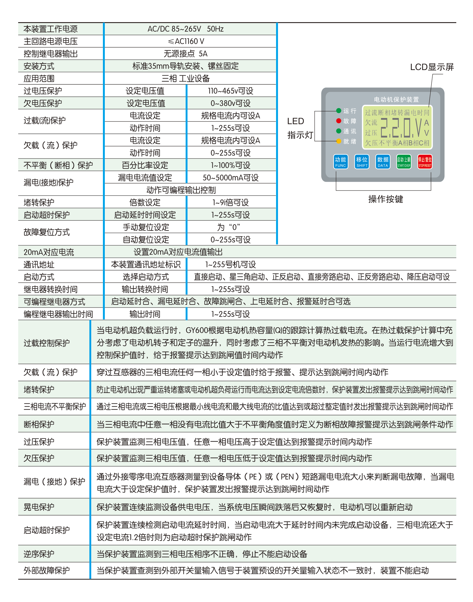 電動(dòng)機(jī)保護(hù)裝置是極大地是高了設(shè)計(jì)與生產(chǎn)效益,同時(shí)大大的降低了用戶現(xiàn)場(chǎng)調(diào)試和設(shè)備推護(hù)成木是一種多功能保護(hù)電動(dòng)機(jī)的管家婆,從而為生產(chǎn)過程提高了科學(xué)有效的現(xiàn)場(chǎng)保護(hù)、測(cè)控單元。